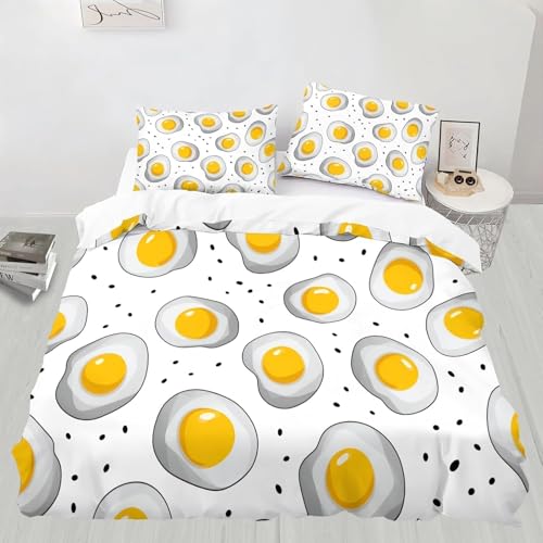 Housse de Couette 140x190 œuf au Plat Parure de Lit 1 Personnes Sésame 3D Imprimée Doux Microfibre Literie 3 Pièces avec Fermeture Éclair et 2 Taies d'oreiller B-2487