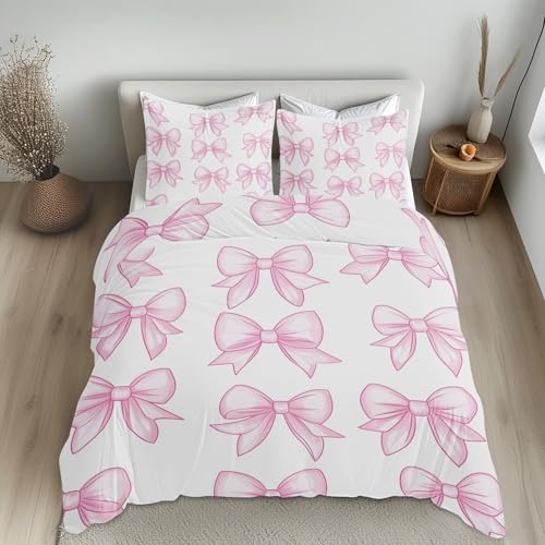 Générique Housse de Couette 140x190 Noeud Rose Fille Parure de lit Microfibre de Housse de Couette Ruban Mignon pour Lit 140x190 avec Fermeture Éclair et 1x Taie d'oreiller 65x65cm Y0j-122