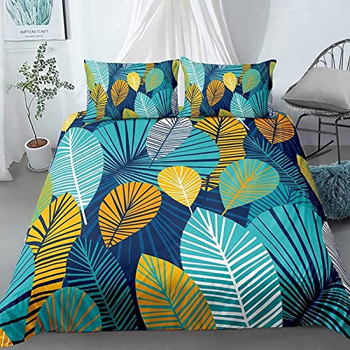 Housse de Couette 140x190 Feuilles de Palmier Parure de Lit 1 Personne Tropical 3D Microfibre Douce Housses de Couettes avec Fermeture Éclair avec 2 Taies d'oreillers 65x65 cm A-2552