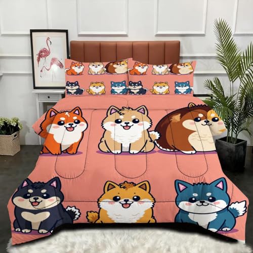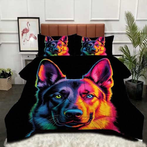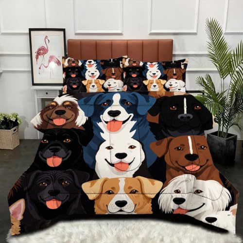 Gumntun Couette 4 Saisons 140x200 cm Chien Animal, Couverture en Microfibre1 Personne Lavage en Machine, Parure de Lit Respirante et Douce Couverture avec 2 Taies d'oreiller 65x65 cm_19204a