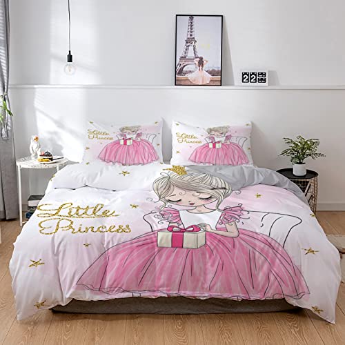 Parure De Lit 90x190 Princesse Rose Blanche Literie ImpriméE en 3D Sets De Parure Housse, Microfibre Douce Housse De Couette 90x190 Et 2 Taie Oreiller 65x65,Adapté Aux Enfants