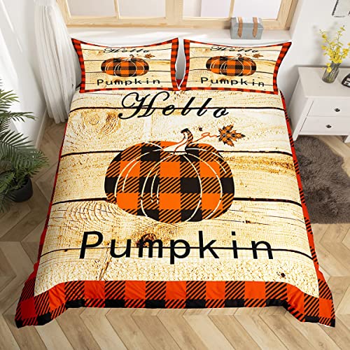 Housse de Couette 200x200 Automne Ensemble de Literie Camion Citrouille À Carreaux D'Automne Parure de Lit Porte de Grange Rustique Couvre Lit Récolte D'Automne Action de Grâce pour Garçons Filles