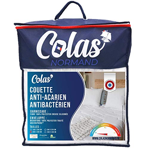 ColasNormand Colas Normand - Couette Anti Acariens et Antibactériens - Légère - 200x200cm - Action Longue durée - Hygiène Parfaite - Microfibre - Doux et Confortable - Lavable - Fabrication française