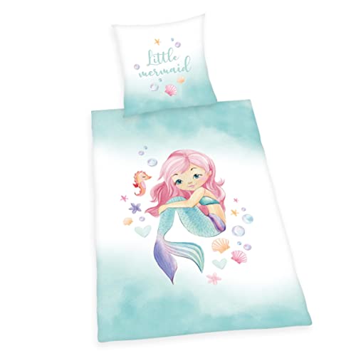 Herding Young Collection Parure de Lit Sirène, Taie d'Oreiller 70 x 90 cm, Housse de Couette 140 x 200 cm, Avec Fermeture Éclair, Coton
