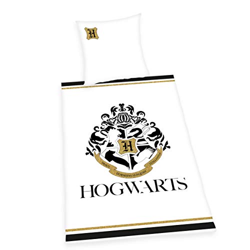 Herding Parure de Lit Harry Potter, Avec Impression Dorée, Motif Réversible, Housse de Couette 140 x 200 cm, Taie d'Oreiller 70 x 90 cm, Coton/Renforcé