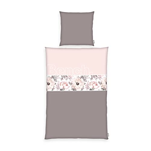 Herding Bench Parure de Lit, Urban Grey, Taie Oreiller Env. 70 x 90 cm, Housse de Couette Env. 140 x 200 cm, avec Fermeture Éclair, 100% Coton, Couleur : Gris/Blanc, Réf. : 4412601077
