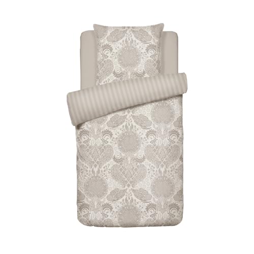 Pure Cotton - Parure de Lit Housse de Couette + 1 Taie d'oreiller - Linge de Lit en Satin de Coton - Parure de Lit 140 x 220 cm + 50 x 70 cm - Arles, Taupe