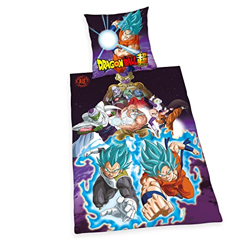 Herding Parure de Lit Dragon Ball Super, Réversible, Taie d'Oreiller 70 x 90 cm, Housse de Couette 140 x 200 cm, Avec Fermeture Éclair Facile, 100% Coton/Renforcé