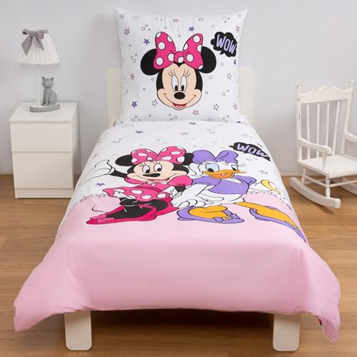 Disney Home Minnie Parure de lit réversible avec Housse de Couette 140 x 200 cm – Taie d'oreiller 60 x 70 cm – Super Doux renforcé 100% Coton – Parure de lit 2 pièces, Douce et agréable au Touche