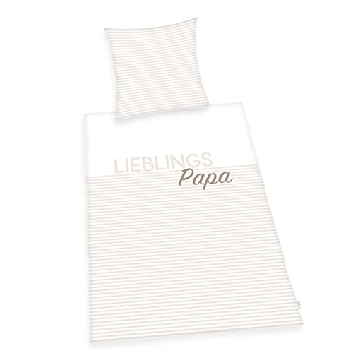 Herding Parure de Lit "Papa Préféré", Taie d'Oreiller 70 x 90 cm, Housse de Couette 140 x 200 cm, Avec Fermeture Éclair, Coton/Renforcé, Blanc/Beige