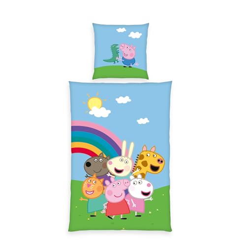 Herding Peppa Pig Ensemble de literie, Motif réversible, taie d'oreiller 70 x 90 cm, Housse de Couette 140 x 200 cm, avec Fermeture éclair, 100% Coton/renforcé