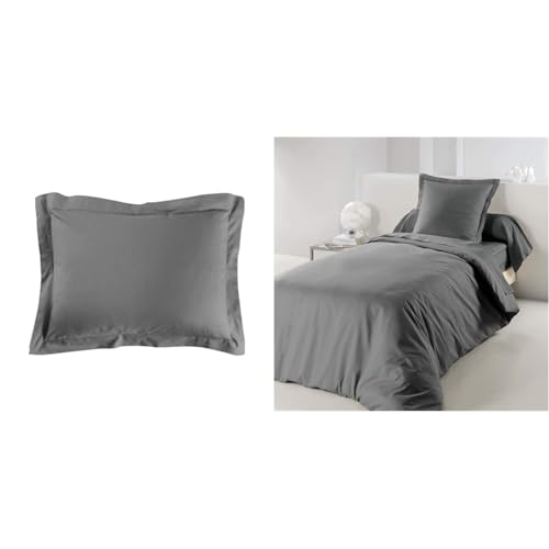 douceur d'intérieur, Taie d'oreiller (50 x 70 cm) Lina Anthracite, 100% Coton + douceur d'intérieur, Housse de Couette (140 x 200 cm) Lina Gris Souris, 100% Coton