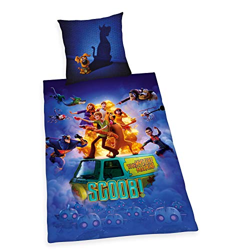 Herding Parure de Lit Scooby Doo, Réversible, Taie d'Oreiller 70 x 90 cm, Housse de Couette 140 x 200 cm, Avec Fermeture Éclair Facile, Coton/Renforcé, Bleu