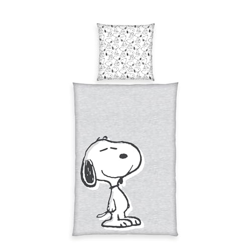Herding Peanuts Ensemble de literie, Motif réversible, taie d'oreiller 70 x 90 cm, Housse de Couette 140 x 200 cm, avec Fermeture éclair, 100% Coton/renforcé