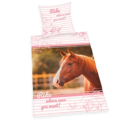 Herding YOUNG COLLECTION Parure de Lit Réversible, Chevaux, Housse de Couette 140 x 200 cm, Taie d'Oreiller 70 x 90 cm, Coton/Renforcé
