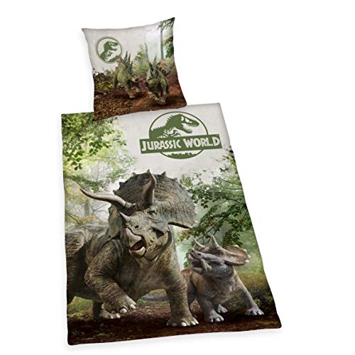 Herding Parure de Lit Jurassic World, Réversible, Taie d'Oreiller 70 x 90 cm, Housse de Couette 140 x 200 cm, Avec Fermeture Éclair de Qualité, Coton/Renforcé