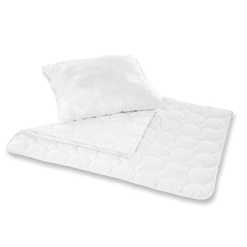 Vizaro - Couette - Rembourrage Nordique + Oreiller (100x135cm, 30x60cm) 300g - 9,5 Tog Lit Bébé 70x140cm - Edredon - Hiver & Demi-Saison - Très Chaud - Respirant - 100% Coton- Fabriqué en UE, OekoTex