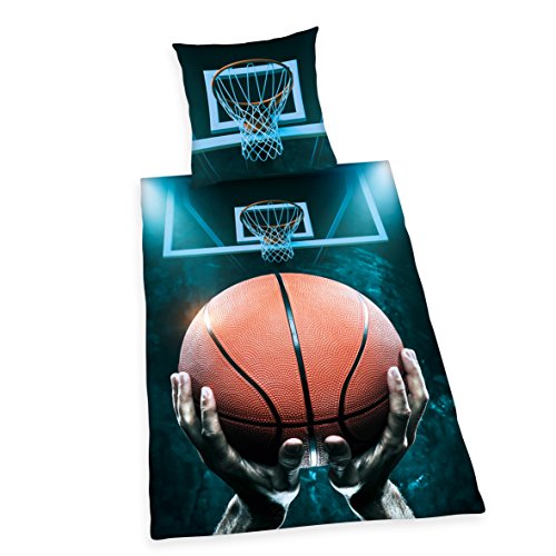 Herding YOUNG COLLECTION Parure de Lit Réversible, Basketball, Housse de Couette 140 x 200 cm, Taie d'Oreiller 70 x 90 cm, Coton/Renforcé