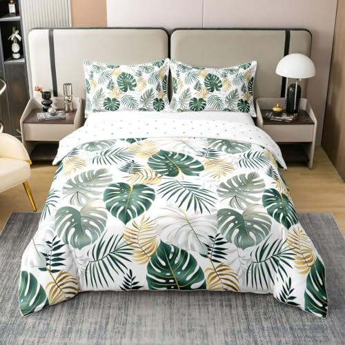 Homewish Housse de Couette Feuilles de Palmier,Parure de Lit Enfant 240 x 260 Feuille de Monstera Tropicale Hawaïenne,Sets de Housses de Couettes Plante Botanique D'Été Garçons Filles Vert Moderne
