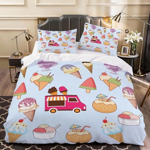 kesweiss Housse de Couette 240 x 260 Glace, Parure de lit 240x260 Adulte Style D'Été Plage Imprimé avec Taies d'oreiller 2 Personnes Set de Housse Couette Microfibre Doux