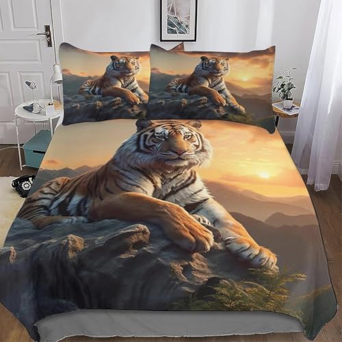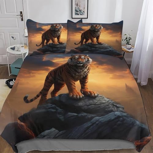 Housse de Couette 240x260 Tigres Animaux Parure de Lit 3D Imprimée Douce Microfibre Duvet Cover 2 Personnes Rochers avec Fermeture éclair et 2 Taie d'oreiller 65x65 2249-C