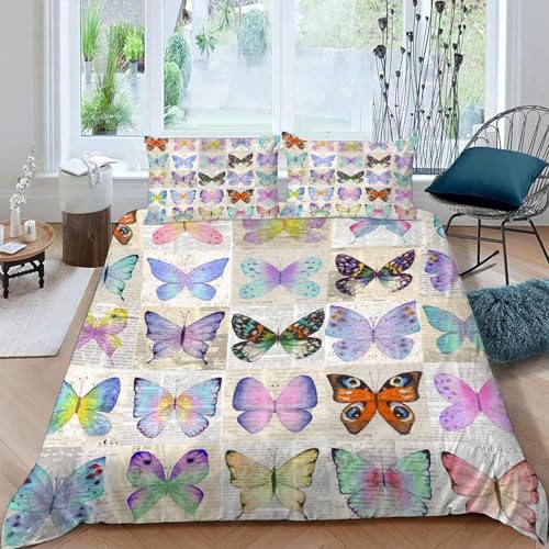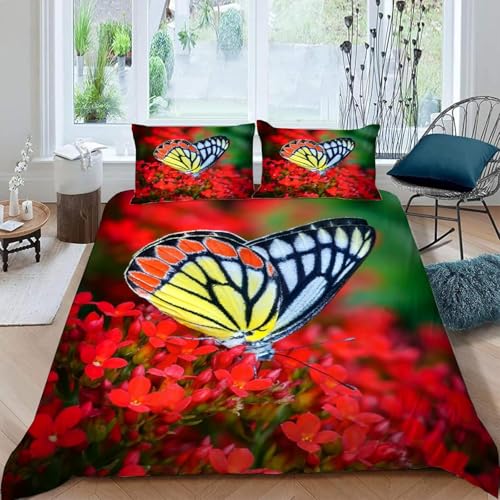 Housse de Couette 240x260 Papillon Coloré Parure de Lit 3D Imprimée Douce Microfibre Duvet Cover 2 Personnes Insectes Artistiques avec Fermeture éclair et 2 Taie d'oreiller 65x65 2603-C