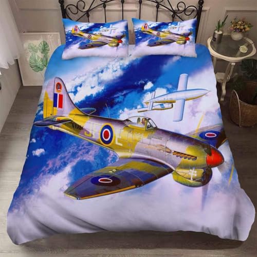Housse de Couette 240x260 Avion Dessin Animé Parure de Lit 3D Imprimée Douce Microfibre Duvet Cover 2 Personnes Avion Chasse avec Fermeture éclair et 2 Taie d'oreiller 65x65 2501-C