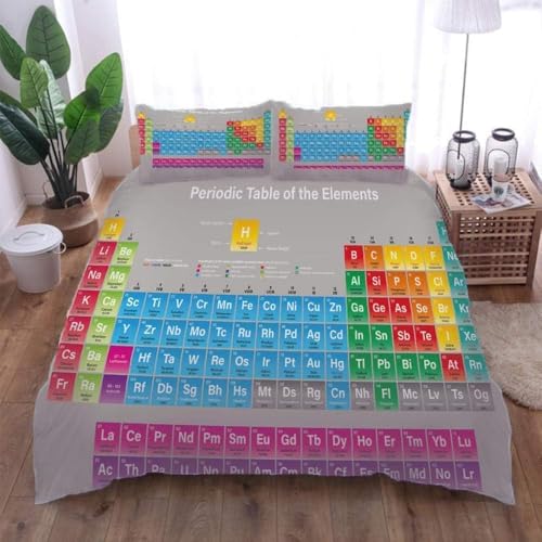 Housse de Couette 240x260 Tableau Périodique Parure de Lit 3D Imprimée Douce Microfibre Duvet Cover 2 Personnes Thème Chimie avec Fermeture éclair et 2 Taie d'oreiller 65x65 2285-C