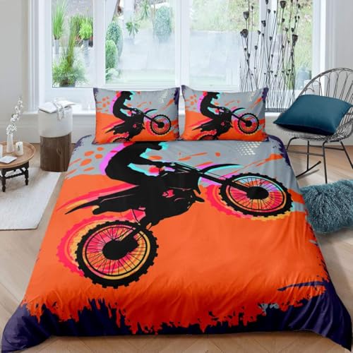 Housse de Couette 240x260 Moto Parure de Lit 3D Imprimée Douce Microfibre Duvet Cover 2 Personnes Sports Extrêmes avec Fermeture éclair et 2 Taie d'oreiller 65x65 2411-C