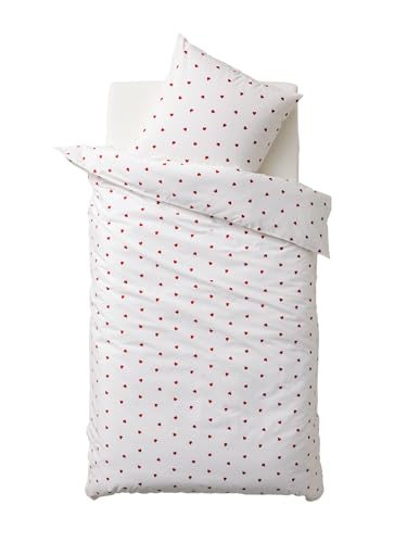 VERTBAUDET Parure Housse de Couette Enfant et taie d'oreiller Coeurs, avec Coton recyclé Blanc imprimé 200X200 63X63
