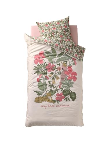 Home Linge Passion Parure de Couette Enfant 100% Coton 57 Fils - Blanc - Roupillon - Paradise - 140x200 cm