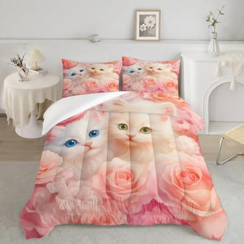 Couette Imprimée 140X200 Chat Rose Rembourrage 200Gsm en Microfibre Respirante, 4 Saisons Quilt Respirante De Mode Minimaliste avec 2 Taie d'oreiller 50X75