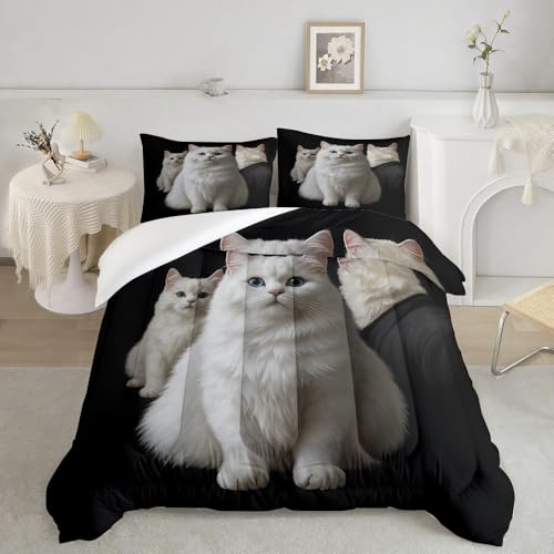 Couette Imprimée 140X200 Chat Blanc Rembourrage 200Gsm en Microfibre Respirante, 4 Saisons Quilt Respirante De Mode Minimaliste avec 2 Taie d'oreiller 50X75