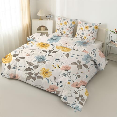 Syhi Qlty Couette Imprimée Fleurs Vintage 140x200 cm Legere Plantes - Couette sans Houss Réversible 4 Saisons Douce Microfibre avec 2 Taies d'oreiller H135