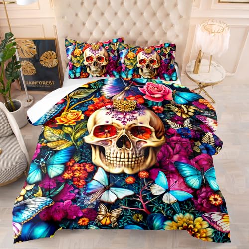 Couette Imprimée 140X200 Crâne Noir Rembourrage 200Gsm en Microfibre Respirante, 4 Saisons Quilt Respirante De Mode Minimaliste avec 2 Taie d'oreiller 50X75