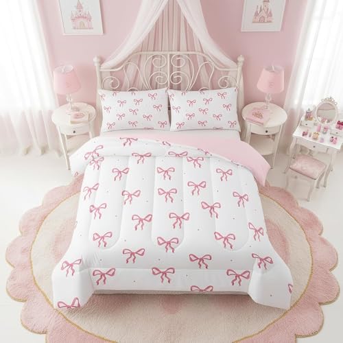 Couette Imprimée 200x200 Nœud Rose Couette sans Housse Lavable Adulte Style Girly 2 Personne Édredon Chaude, Décoration - Edredon Microfibre Douce, 2 Taies d'oreiller 65x65 YUc922