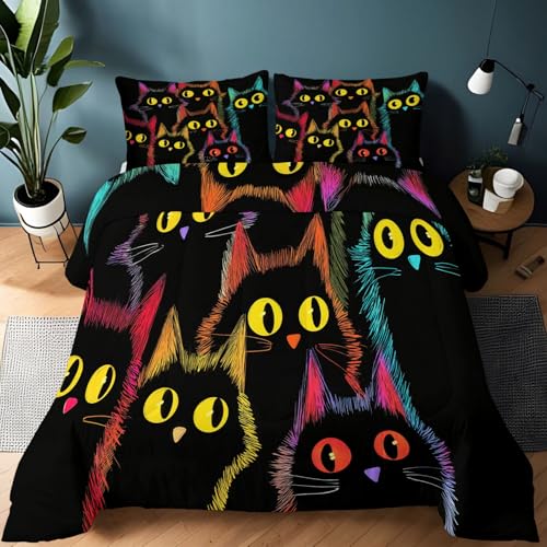 Couette Imprimée 200x200 cm Résumé Animal Chat Couette en Duvet Coloré Réversible - Édredon 2 Personnes Respirante Douce pour 4 Saisons - 2 Taies d'oreiller 65x65 cm - Machine
