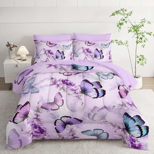 Couette Imprimée 200x200 Papillon Couette sans Housse Lavable Adulte Violet 2 Personne Édredon Chaude, Décoration - Edredon Microfibre Douce, 2 Taies d'oreiller 65x65 YUc874