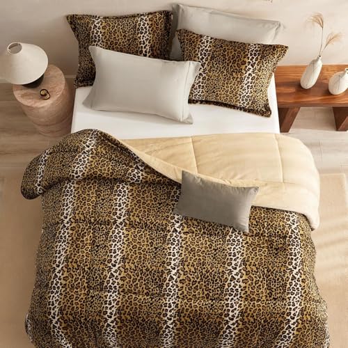Couette Imprimée 200x200 Imprimé léopard Couette sans Housse Lavable Adulte Marron 2 Personne Édredon Chaude, Décoration - Edredon Microfibre Douce, 2 Taies d'oreiller 65x65 YUc640