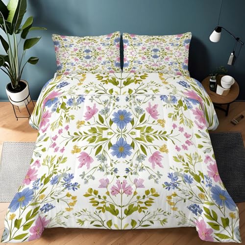 buyluhn Couette Imprimée 200x200 4 Saisons,Couette Fleur Adulte 2 Personnes Reversible, Edredon Duvet Couleur Ete Hiver avec 2 Taies d'oreiller, Lavable en Machine