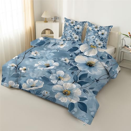 Syhi Qlty Couette Imprimée Fleurs Bleues 200x200 cm Legere Plantes Vintage - Couette sans Houss Réversible 4 Saisons Douce Microfibre avec 2 Taies d'oreiller H63