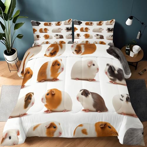 Couette Imprimée 200x200 cm Animaux Cochons d'Inde Animaux De Compagnie Couette en Duvet Blanc Brun Réversible - Édredon 1 Personnes Respirante Douce pour 4 Saisons - 2 Taies d'oreiller 65x65 cm