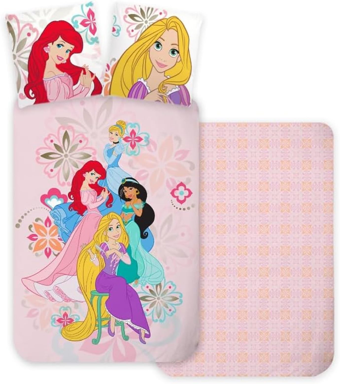 Parure Princesses Disney pour Lit Bébé ou Évolutif, Housse de Couette Réversible 100x135 cm + Taie d'oreiller 40x60 cm, 100% Coton