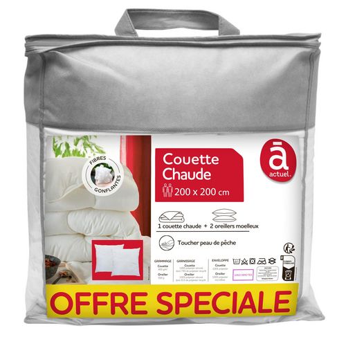 Pack couette chaude + oreiller moelleux blanc 200 x 200 cm