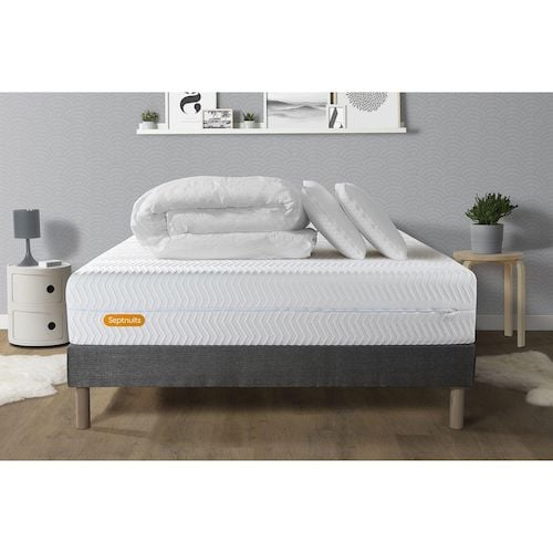 Pack prêt à dormir Matelas + Sommier 90 x 190 cm + Couette + Oreiller - DEKO DREAM Malin