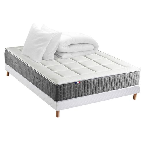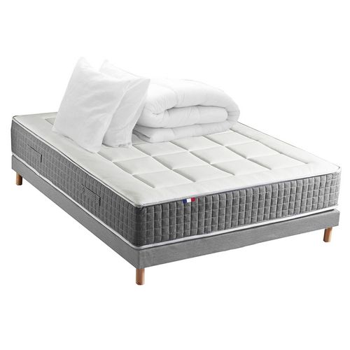 Matelas ressorts MAX 7 zones sommier rigide pack couette oreiller 160 x 200 Sommier Gris chiné gris / gris 160 x 200 cm