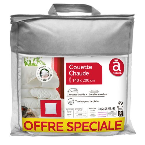 Pack couette chaude + oreiller moelleux blanc 140 x 200 cm