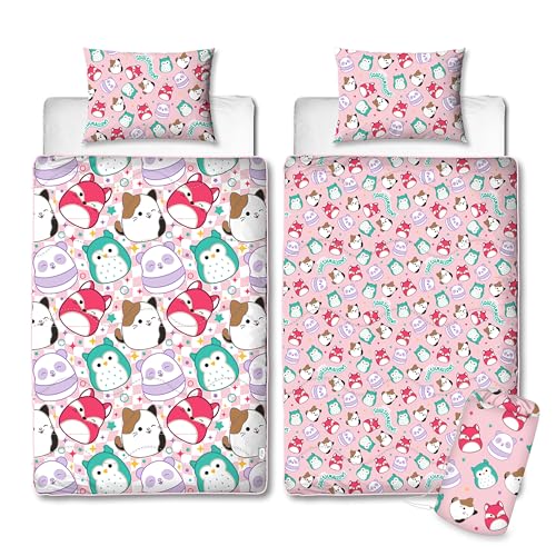 Character World Squishmallows Parure de lit Simple sans Housse de Couette réversible sans Housse de Couette, Oreiller et taie d'oreiller | Couette Lavable | Parfait pour Les Voyages et Les soirées