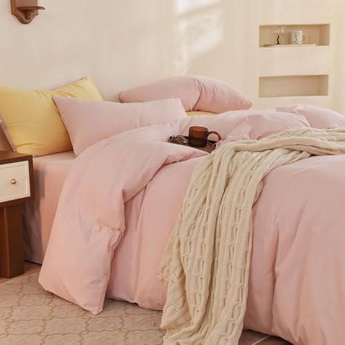 Nyescasa Housse de Couette 240x260 Rose Poudré Couleur Unie Moderne Parure de lit Adulte 2 Personnes en Microfibre Sets de Housses de Couettes avec Fermeture Éclair et 2 Taies d'oreiller 65x65 cm
