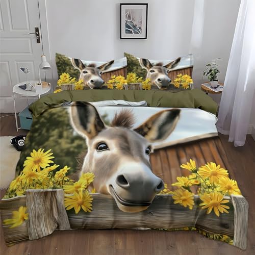 Générique Housse de Couette 240x260 cm Âne Animal Fleur De Marguerite 3D Housse De Couette Sets de Housses De Couettes Adulte Ado Enfants, avec 2 Taies d'oreiller 65x65 cm